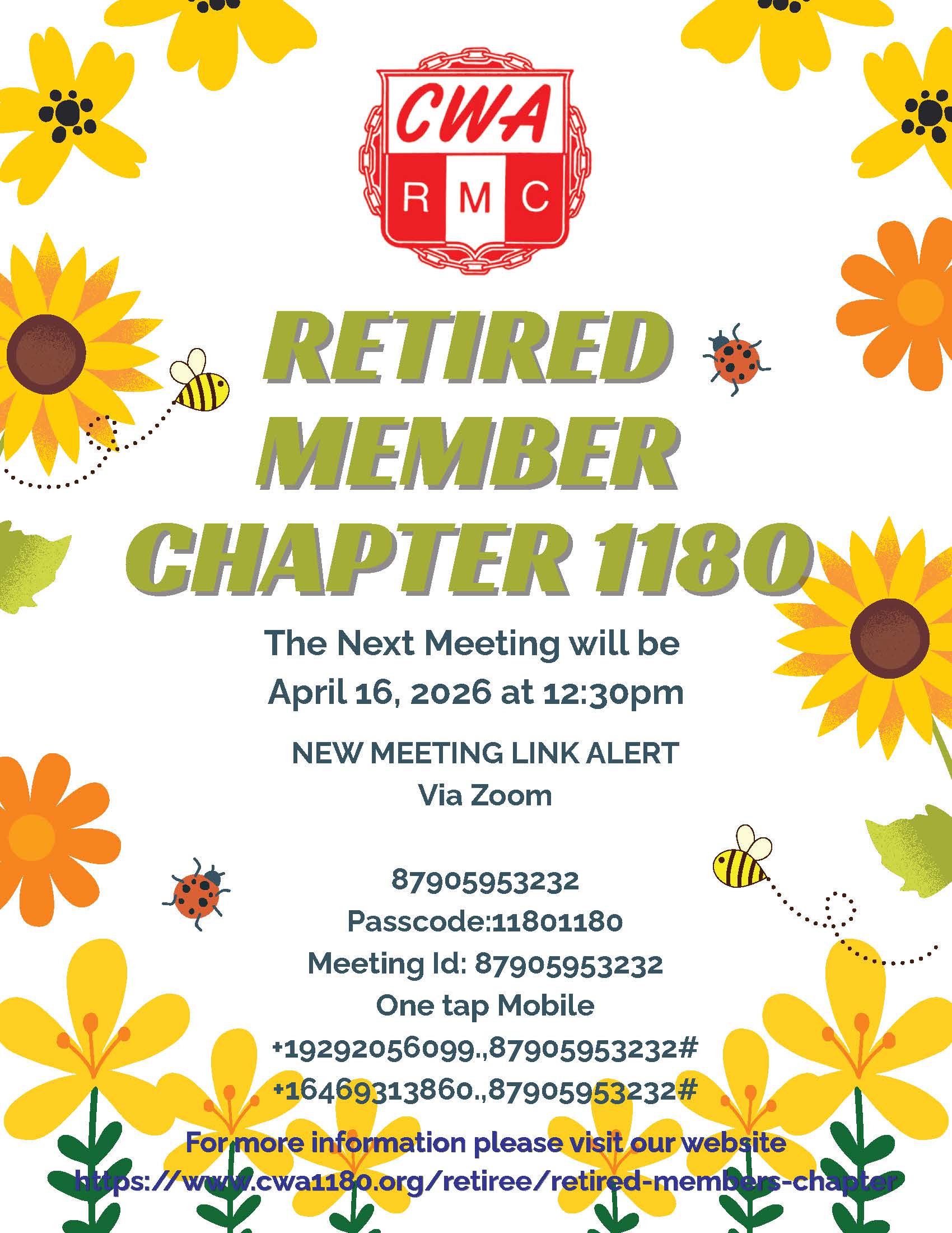 To join the Retired Members Chapter, please CLICK HERE to fill out the form. Once complete, send the form and your payment to: